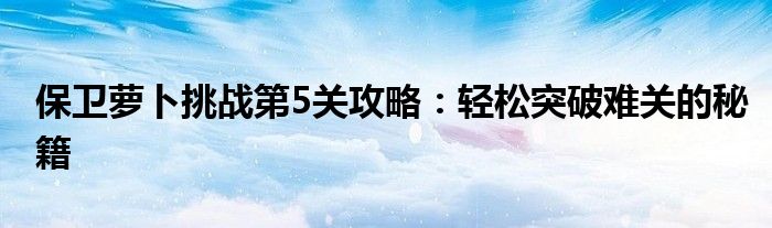 保卫萝卜挑战第5关攻略:轻松突破难关的秘籍