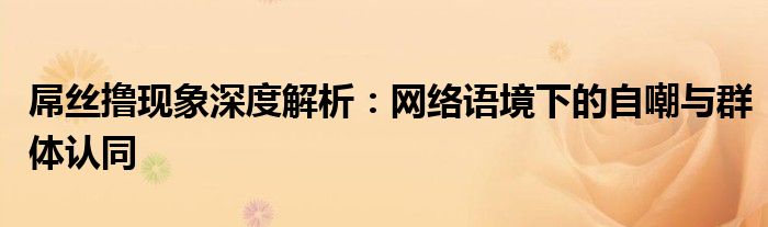 网络语境下的“屌丝撸”不仅仅是一种自我调侃,更是一种群体认同的标志。它反映了一种亚文化群体的共同情感和认同,通过自嘲的方式找到彼此之间的共鸣和归属感。