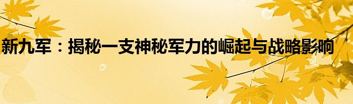 本文将深入探讨新九军的发展历程、战略地位以及其在国内外形势下的重要作用。作为新晋军事力量,新九军以其独特的战略位置和作战能力在国际军事格局中发挥着举足轻重的作用。我们将从不同角度揭示这支神秘军力的崛起与影响。