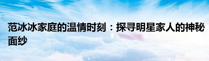 文章本文将聚焦于范冰冰的家人,揭示这个明星家庭背后的故事,以及他们与范冰冰之间的温情时刻。从家庭成员到亲情故事,让我们一同探寻明星家人的神秘面纱。