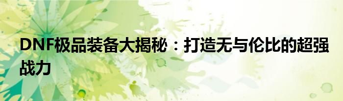 在热门网络游戏《地下城与勇士》(DNF)中,极品装备是每个玩家所追求的终极目标。今天我们就来一起揭开DNF极品装备的神秘面纱,探讨如何打造无与伦比的超强战力。