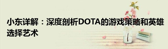 小东详解:深度剖析DOTA的游戏策略和英雄选择艺术