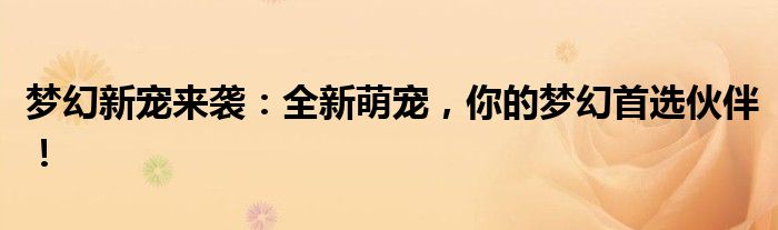 总结:梦幻新宠的到来无疑给游戏注入了新的活力与激情。快来选择你的梦幻伙伴,共同开启一段全新的冒险之旅吧!