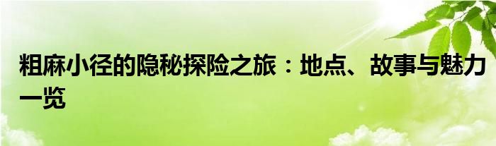 粗麻小径的隐秘探险之旅:地点、故事与魅力一览