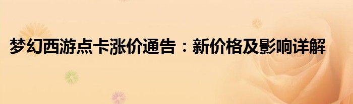 我们有一些重要的消息需要告知您。关于梦幻西游点卡的价格,我们做出了新的调整,以下是关于点卡涨价的详细通告。