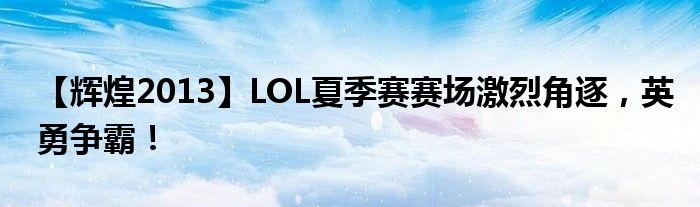 【辉煌2013】LOL夏季赛赛场激烈角逐,英勇争霸!