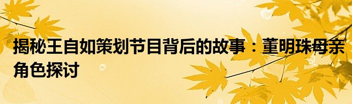 揭秘王自如策划节目背后的故事:董明珠母亲角色探讨