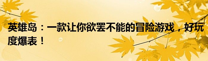 英雄岛:一款让你欲罢不能的冒险游戏,好玩度爆表!