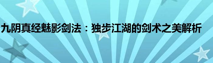 九阴真经魅影剑法:独步江湖的剑术之美解析