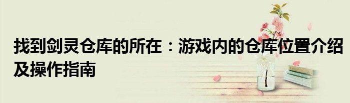 找到剑灵仓库的所在:游戏内的仓库位置介绍及操作指南