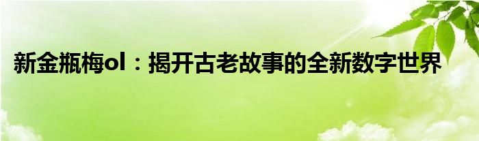 新金瓶梅ol:揭开古老故事的全新数字世界