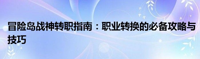 冒险岛战神转职指南:职业转换的必备攻略与技巧