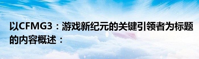 以CFMG3:游戏新纪元的关键引领者为标题的内容概述: