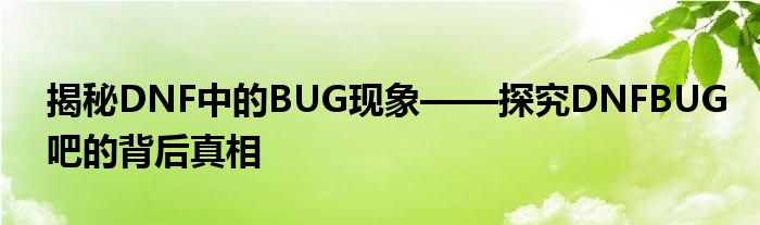 揭秘DNF中的BUG现象——探究DNFBUG吧的背后真相