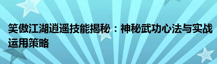 笑傲江湖逍遥技能揭秘:神秘武功心法与实战运用策略