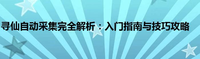 寻仙自动采集完全解析:入门指南与技巧攻略