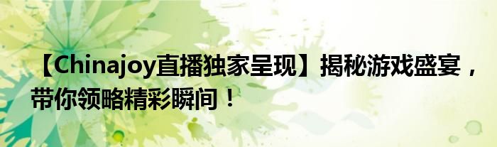 【Chinajoy直播独家呈现】各位游戏爱好者,备受瞩目的Chinajoy游戏盛宴已经拉开帷幕!今年的Chinajoy直播将带你领略游戏的无限魅力,呈现精彩瞬间,让你仿佛身临其境。