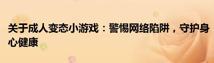 关于成人变态小游戏:警惕网络陷阱,守护身心健康