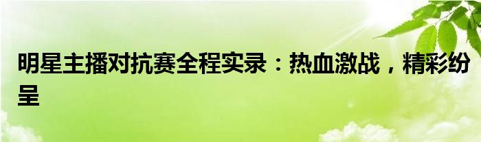 明星主播对抗赛全程实录:热血激战,精彩纷呈