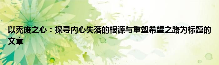 以秃废之心:探寻内心失落的根源与重塑希望之路为标题的文章