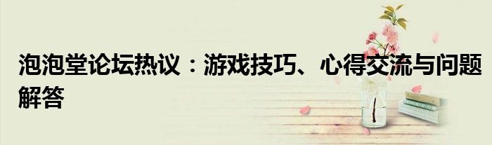 泡泡堂论坛热议:游戏技巧、心得交流与问题解答