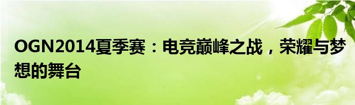 OGN2014夏季赛:电竞巅峰之战,荣耀与梦想的舞台