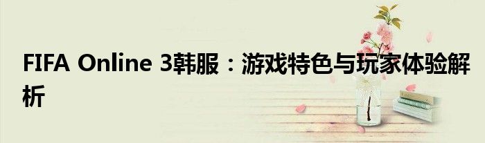 FIFA Online 3韩服:游戏特色与玩家体验解析