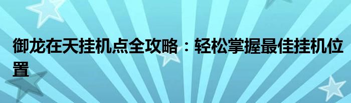 在游戏《御龙在天》中,挂机点是指玩家可以在特定地点停留一段时间,自动进行战斗获取经验和奖励的区域。这些地点通常有着丰富的资源和高效率的战斗体验。