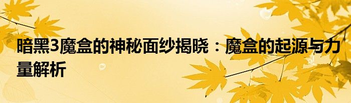 本文将深入探索暗黑破坏神3中的魔盒的神秘面纱,带您了解魔盒的起源和强大的力量。通过深入挖掘其历史背景、独特功能和实用攻略,让玩家更好地理解并充分利用这一核心道具。