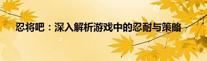 在充满挑战与机遇的游戏世界中,“忍将吧”不仅仅是一个简单的关键词,它更多地代表着一种游戏精神与策略的核心。在这篇文章中,我们将深入探讨“忍将吧”所蕴含的游戏哲学,分析如何在游戏中展现忍耐与策略的智慧。
