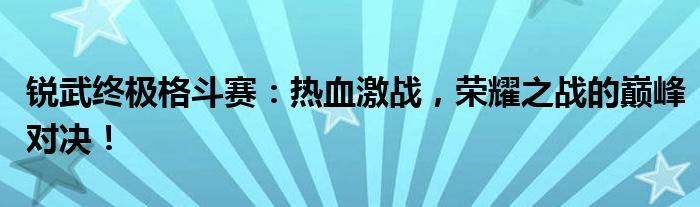 锐武终极格斗赛:热血激战,荣耀之战的巅峰对决!