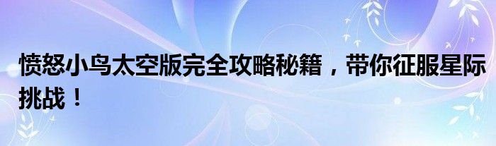 愤怒小鸟太空版完全攻略秘籍,带你征服星际挑战!