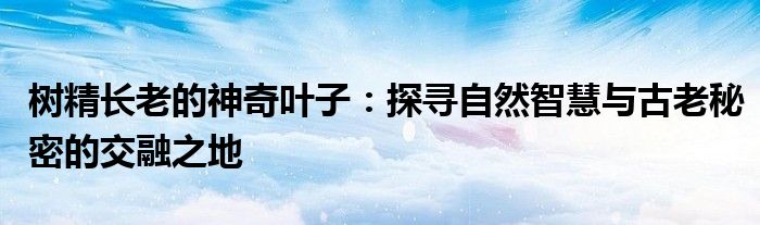 树精长老的神奇叶子:探寻自然智慧与古老秘密的交融之地