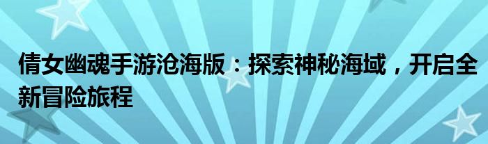倩女幽魂手游沧海版:探索神秘海域,开启全新冒险旅程