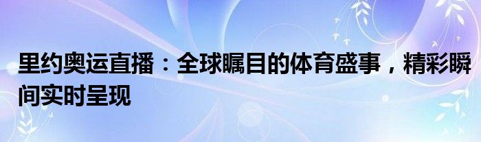里约奥运直播:全球瞩目的体育盛事,精彩瞬间实时呈现