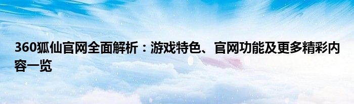 本文将为您详细介绍“360狐仙官网”,带您了解该游戏的特点、官网功能以及其他精彩内容,让您对这款游戏有更深入的了解。