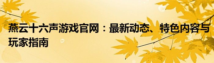 燕云十六声游戏官网作为该游戏的官方信息发布平台,为玩家提供最新的游戏动态、特色内容以及详尽的玩家指南。进入官网首页,首先映入眼帘的是游戏的精美宣传画面和最新更新的游戏版本信息。