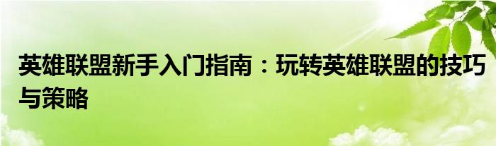 英雄联盟新手入门指南:玩转英雄联盟的技巧与策略
