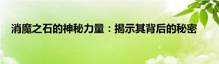 本文将探讨被称为“消魔之石”的神秘宝石,它以其独特的力量吸引了人们的目光。作为一种独特的存在,“消魔之石”不仅是一种装饰品,还具备一系列超凡的神秘能力。我们将深入探索其背后的历史、文化意义以及科学解释。