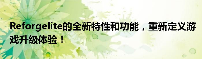 Reforgelite的全新特性和功能,重新定义游戏升级体验!