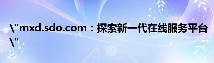 在数字化时代,随着科技的飞速发展和互联网的普及,人们对在线服务的需求越来越高。为了满足这一需求,mxd.sdo.com应运而生,致力于提供新一代在线服务平台,助力用户实现更高效、更便捷的工作和生活。