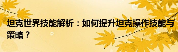 坦克世界技能解析:如何提升坦克操作技能与策略?