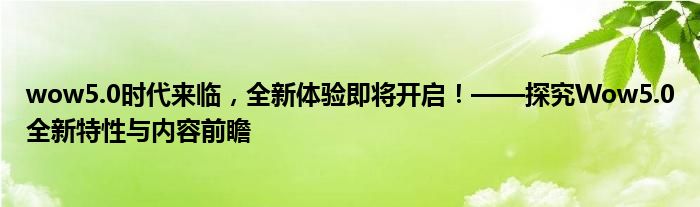 wow5.0时代来临,全新体验即将开启!——探究Wow5.0全新特性与内容前瞻