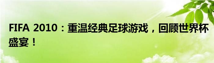FIFA 2010:重温经典足球游戏,回顾世界杯盛宴!