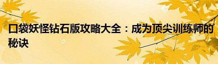 口袋妖怪钻石版攻略大全:成为顶尖训练师的秘诀