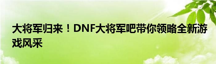 大将军归来!DNF大将军吧带你领略全新游戏风采