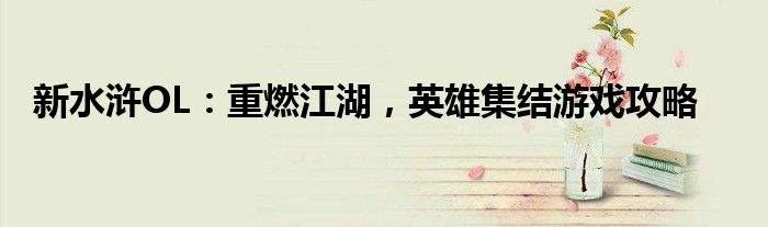 新水浒OL:重燃江湖,英雄集结游戏攻略