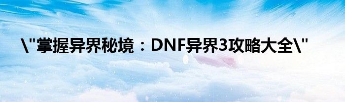 DNF(地下城与勇士)是一款备受欢迎的多人在线角色扮演游戏。其中,异界系列作为游戏的重要部分,为玩家带来了丰富的挑战和奖励。本次攻略将重点介绍DNF异界3的攻略,帮助玩家更好地掌握游戏技巧,轻松通关异界3。