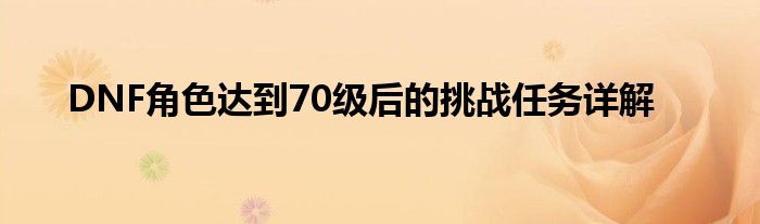 DNF角色达到70级后的挑战任务详解