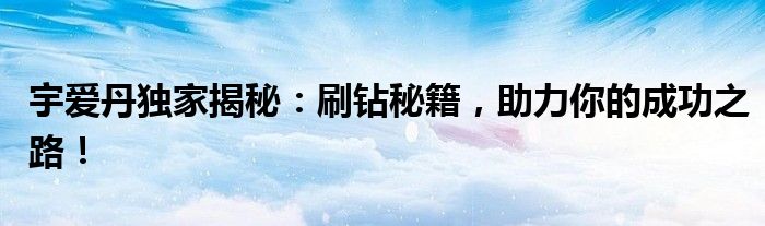 宇爱丹独家揭秘:刷钻秘籍,助力你的成功之路!
